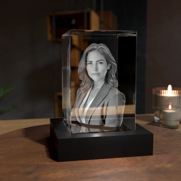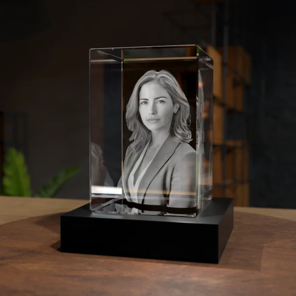 Szukasz wyjątkowego sposobu na utrwalenie zdjęć rodzinnych lub zdjęć pupili? Kryształ Prostopadłościan 3D jest dostępny w ustawieniu pionowym lub poziomym tak, aby najlepiej zaprezentować zdjęcie.