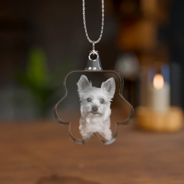 Zachowaj bliskość swojego pupila na zawsze dzięki kryształowej zawieszce w kształcie łapki. Uwiecznij zdjęcie ukochanego zwierzaka — idealne dla każdego, kto chce mieć swojego czworonoga zawsze przy sobie.